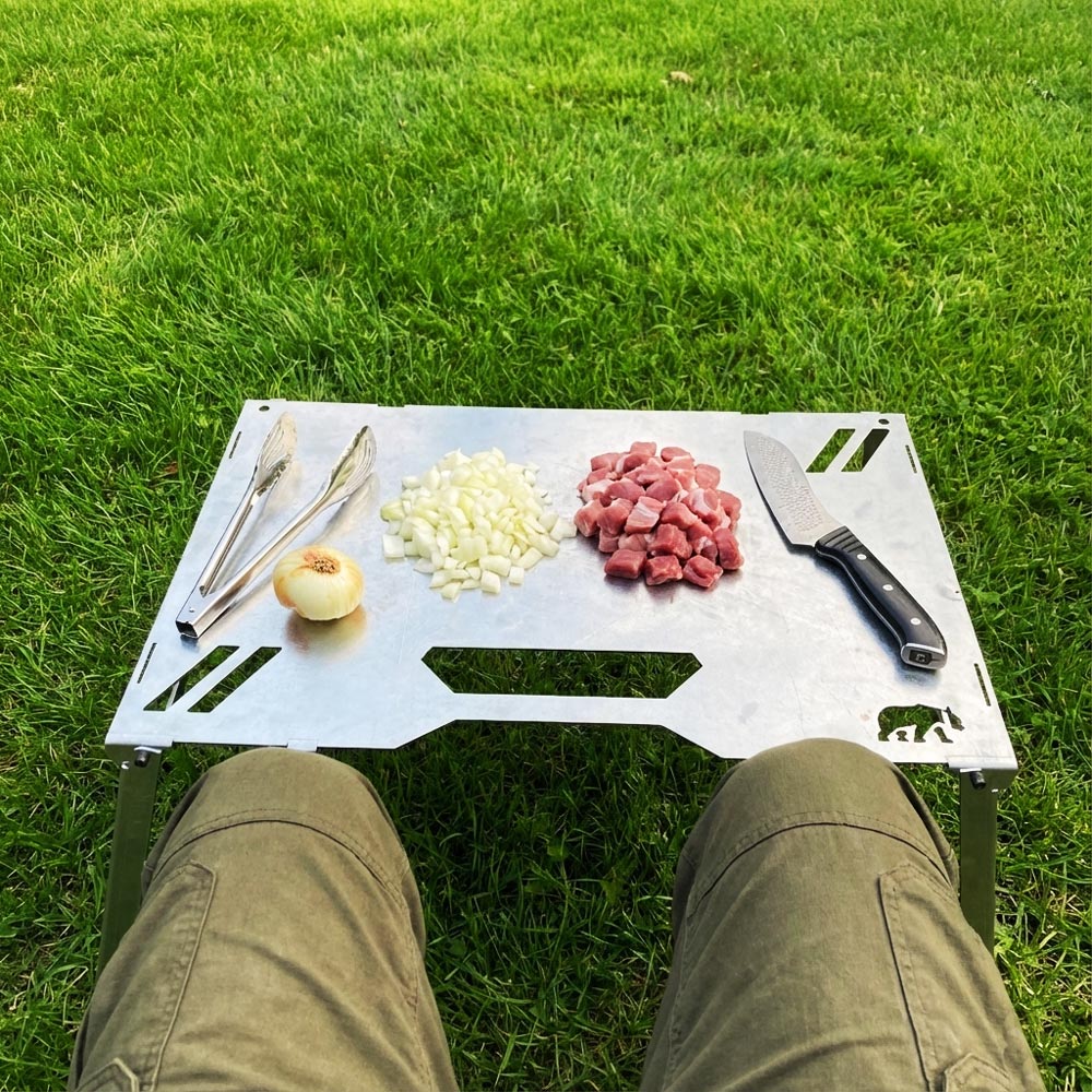 Kamp alanında yemek hazırlarken ayrı bir kesme tahtasına ihtiyaç duymadan pratik bir çalışma alanı sunar. Ateşten alınan sıcak ekipmanları geçici olarak yerleştirebileceğiniz güvenli bir yüzey oluşturarak fonksiyonel bir outdoor çalışma platformu görevi görür.